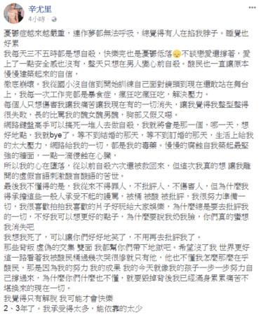 辛尤里臉書全文: