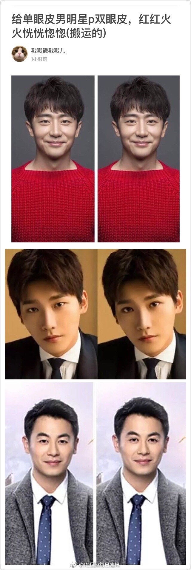 ▲單眼皮男星被P雙眼皮系列圖。(圖/翻攝自吃瓜鵝每日速報)