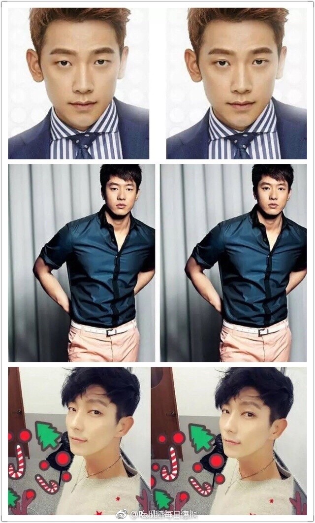 近日大陸微博瘋傳著一組將單眼皮男星P成雙眼皮的組圖,從林俊傑、周杰倫、Rain和李準基等知名藝人都沒有錯過,不過其實大部分的人加上雙眼皮後都是變得更加炯炯有神,眼睛看起來也變得更大了。但其中有個疑問的人物,李榮浩變成雙眼皮之後,眼睛突然變得世紀朦朧,連眼白都消失了,根本就是漫畫人物。