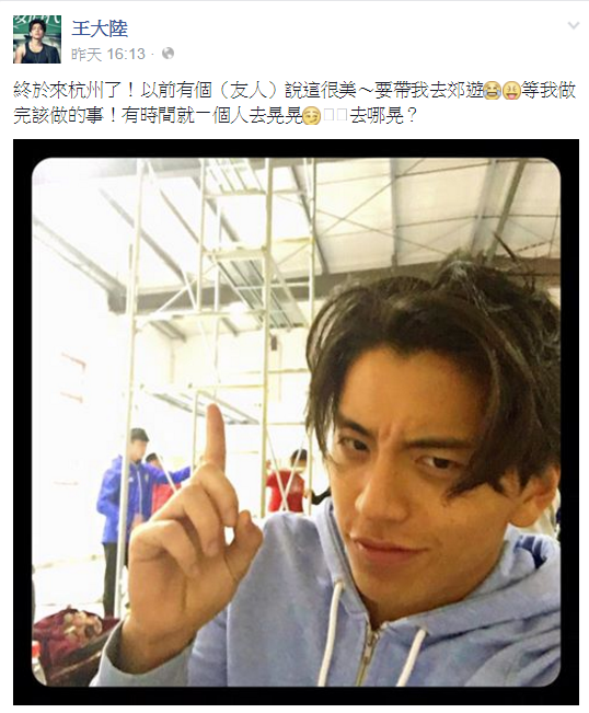●昨(9日)王大陸在臉書PO文,還寫到「該做的事情做完,就去晃晃」。(圖/王大陸臉書)