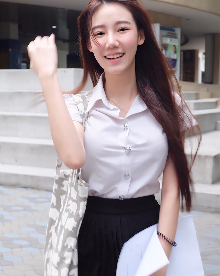 第三張的女孩穿著大地色系的上衣,配上黑色百褶短裙加上那黑色的絲襪,相當有櫃姐的感覺。