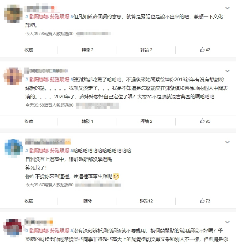 ▼許多大陸網友狂批歐陽娜娜沒文化。(圖/翻攝自微博)