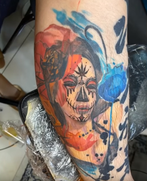 ▼謝和弦將身上Keanna的刺青塗掉。(圖/翻攝自R-chord謝和弦 Youtube、Keanna IG)