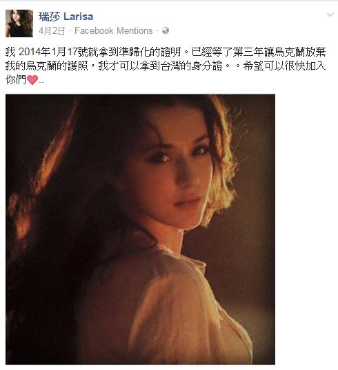 ▼瑞莎曾在臉書po文希望能盡快拿到台灣身分證(圖/翻攝自瑞莎臉書)