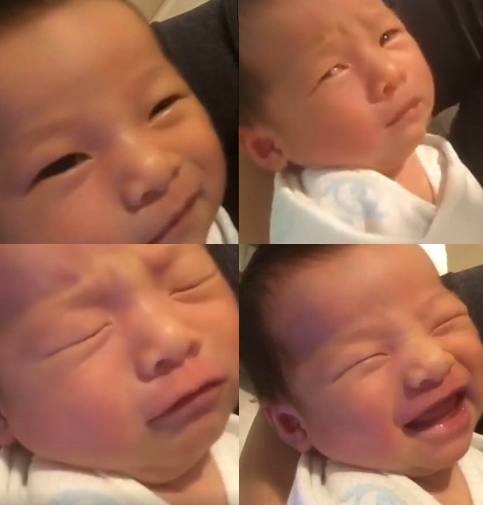 阿緯5日晚間在臉書上傳一段影片,開心說道:「女兒的標準喜怒哀樂表情」。從影片中可以看到,爸爸阿緯將未滿1個月的「錢錢」抱在懷裡,不斷要她「叫爸拔~」,而一副睡眼惺忪的「錢錢」,露出呆萌的樣子,看起來相當可愛,沒想到,下一秒,她似乎瞥見前方有支手機在拍她,竟然立刻露出了微笑,接著又迅速切換表情,一下抿唇皺眉的、一下又閉眼嘟嘴的,將「喜怒哀樂」表現得淋漓盡致,短短26秒就換了4種表情,讓不少人看了驚呼連連。