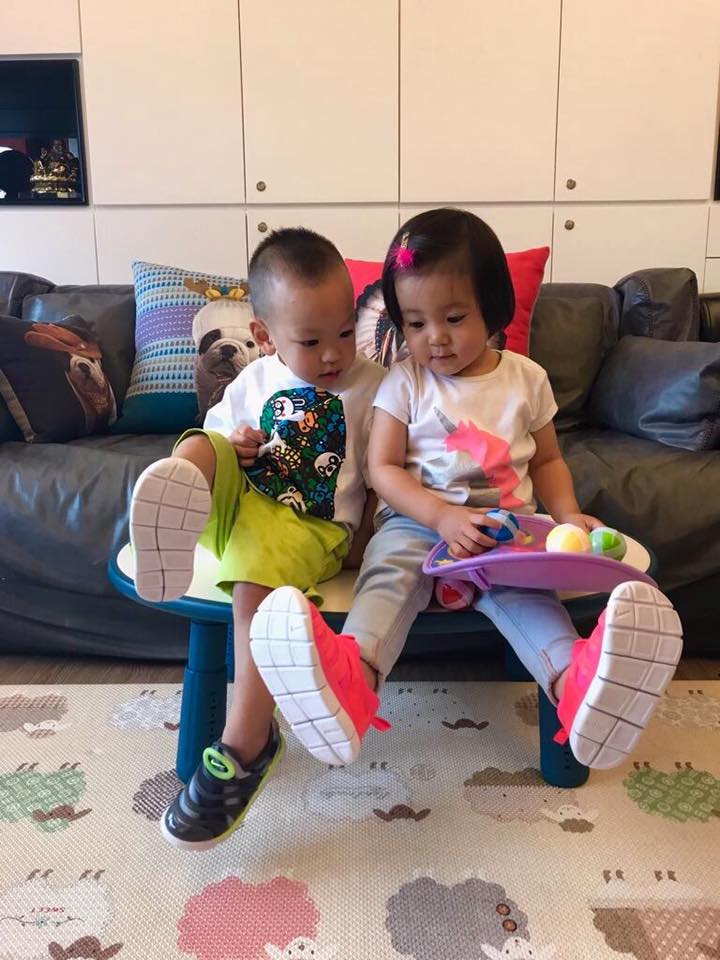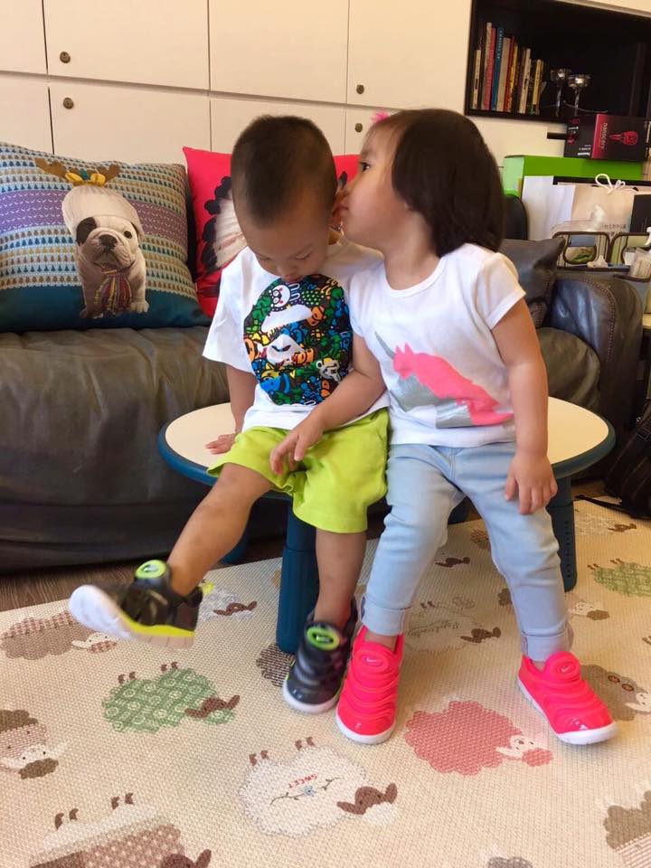 最近回台工作的徐若瑄,不忘趁空檔和親友相聚,而他們今天和咘咘見面的時候,送了一雙和小V寶同款且最近非常熱門的「粉紅毛毛蟲鞋」,兩個可愛的小朋友穿著情侶鞋開心地坐著,沒想到咘咘居然趁機親了小V寶的臉一下,讓在一旁的爸爸修杰凱看到後,無奈地說「嗯……很主動」,粉絲看了都笑翻留言「感覺咘咘可以出一本書,標題就放《如何讓拔拔崩潰的1001種方法》」、「拔拔要崩潰了嗎?」、「修爸表示:咘姐怎麼可以親我以外的男生呢(吃醋中)」。