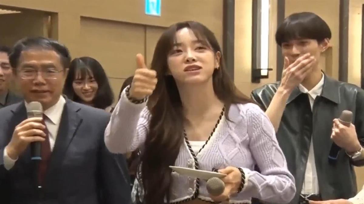 韓國男團VERIVERY成員岡旻(KANGMIN)今(27日)於台北三創CLAPPER STUDIO舉辦首次個人見面會,開場岡旻穿著一襲帥氣學生風格套裝,帶來溫