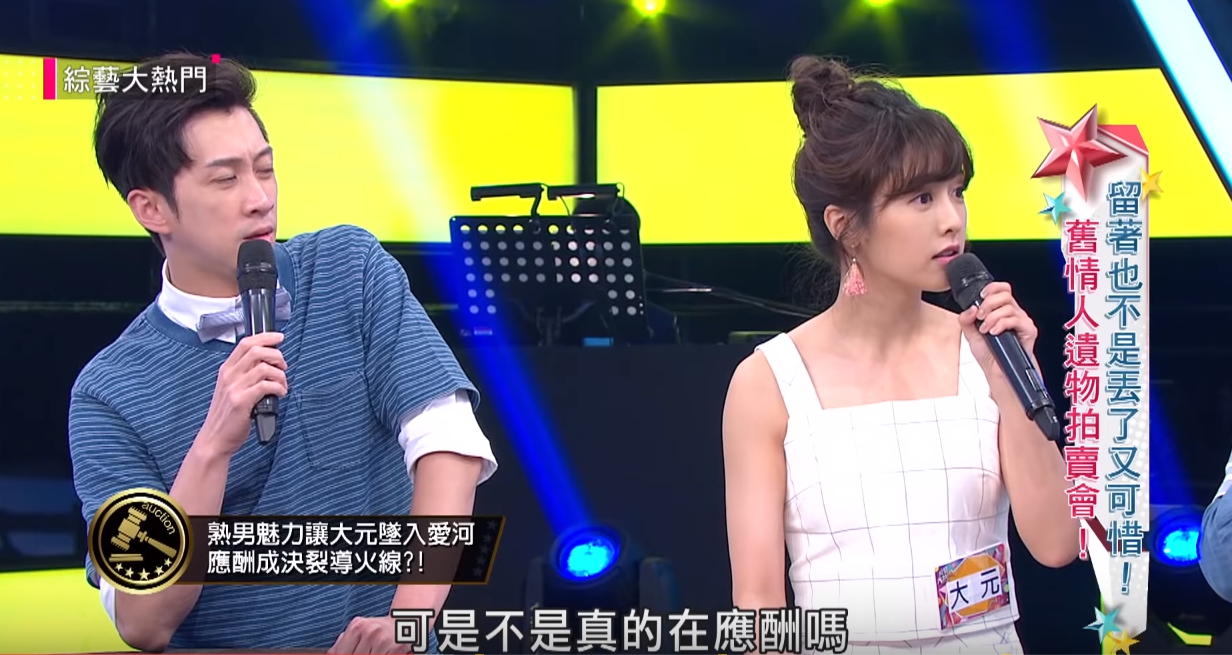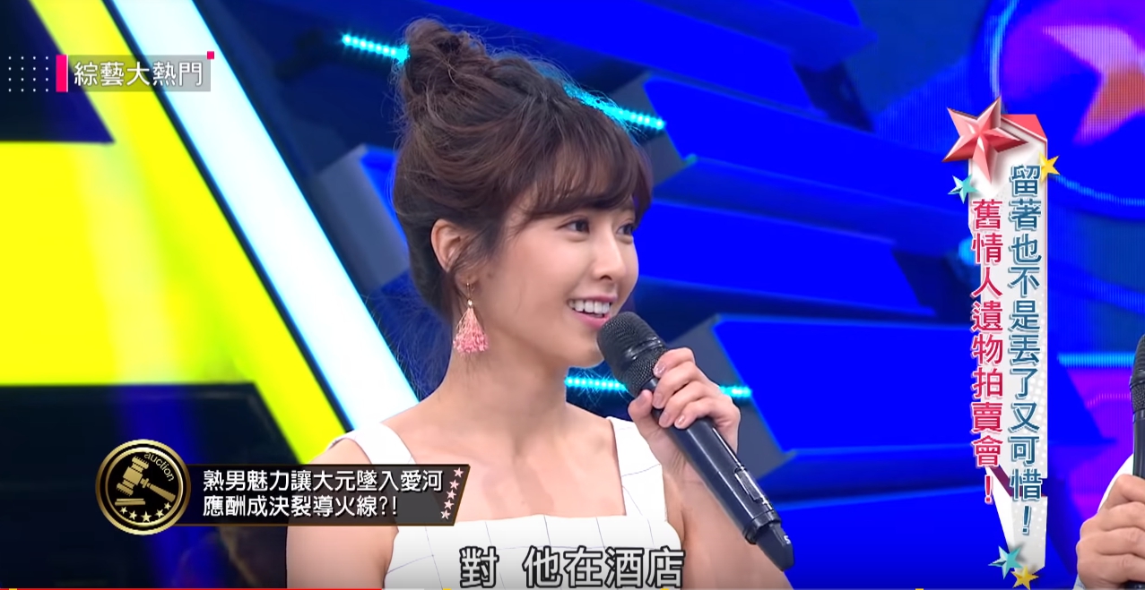 大元配合節目主題「舊情人遺物拍賣會」,帶了前男友送的Hello Kitty聯名手錶,自曝大學時和大自己7、8歲的男友交往,當時的男友很會講甜言蜜語,個性沉穩又有在工作,大元形容他讓她「懂得什麼是愛」,不過因為男友工作越來越忙,常常需要應酬,漸漸的忽略了她,成為分手的導火線。