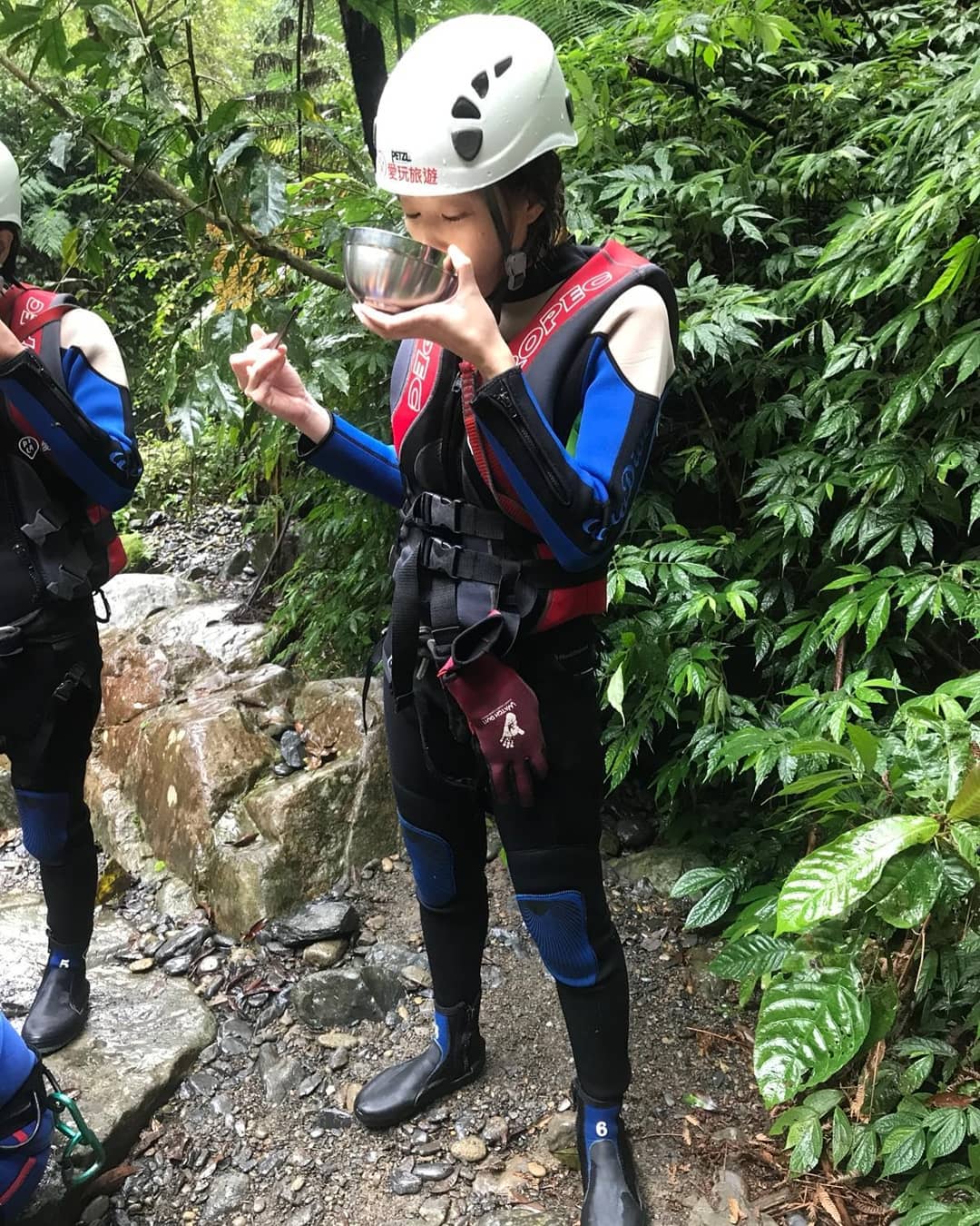 一到休息時間,夏語心趕緊坐在石頭上喘息,只不過她不顧形象地豪邁用餐,看得出來體力完全透支。但成功引起網友注目的是,夏語心脫掉潛水衣後的比基尼正面高清照,只見她一臉狼狽且雙手插腰,左右半球弧形全展露無遺,讓網友忍不住大讚:「身材越來越美了喔」、「最美麗的風景」、「怎麼穿這樣,我要暈倒了」。