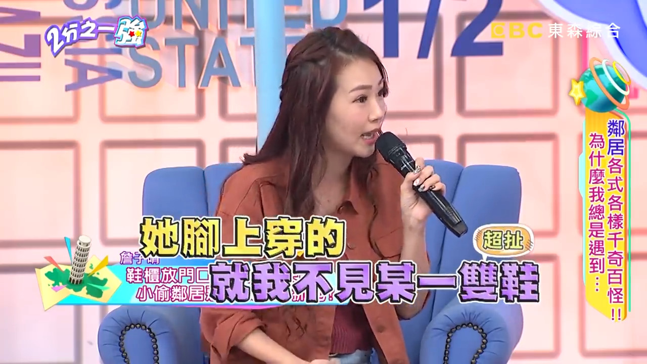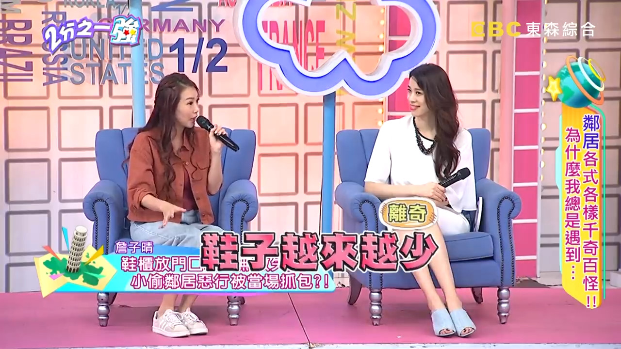 丫頭在東森節目《2分之一強》分享自己的經驗,透露以前住的房子很小,鄰居就會把鞋櫃放在門口,她因為工作關係,也會把很多高跟鞋放在門口,卻發現鞋子愈來愈少,她一度以為是自己忘記拿回家,沒想到有天,她碰巧遇到住隔壁的女房客,對方腳上穿的鞋,正是她不見的鞋子。