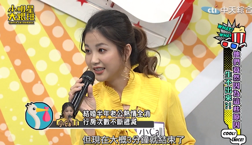 ▼小Call後透露現在夫妻行房時間不到3分鐘。(圖/《小明星大跟班》)