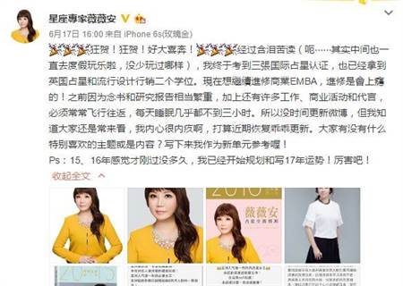 ▼薇薇安今年6月,透露到國外進修,回國後因為工作,每天睡不到3小時。(圖/截取自薇薇安微博)